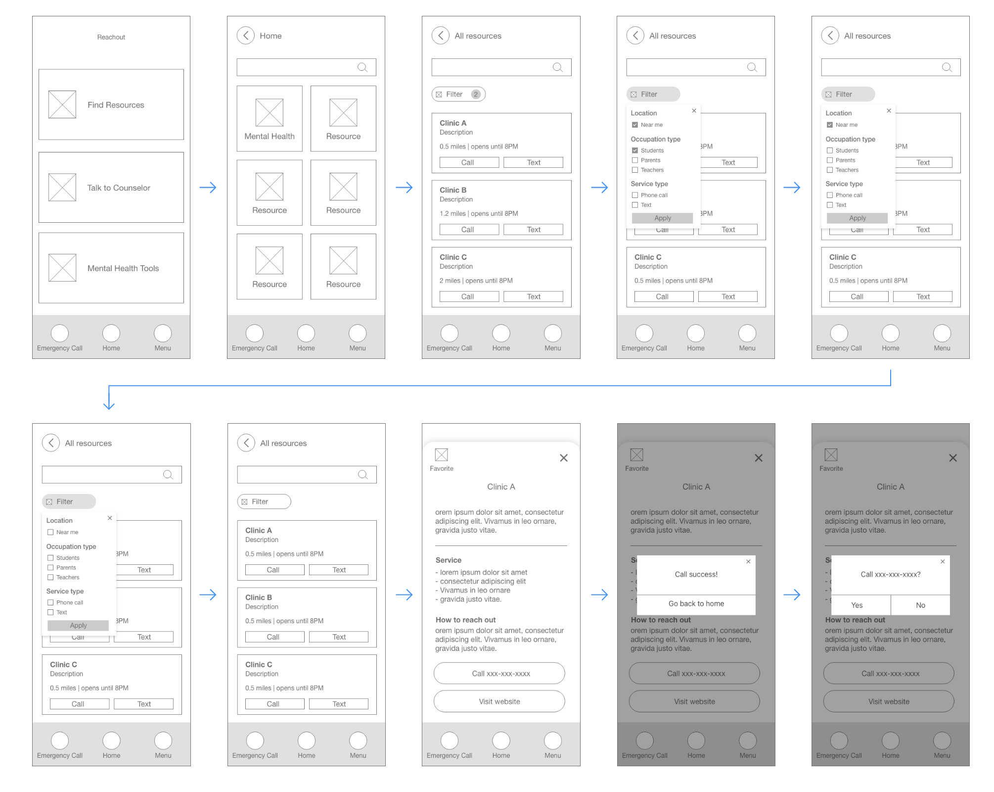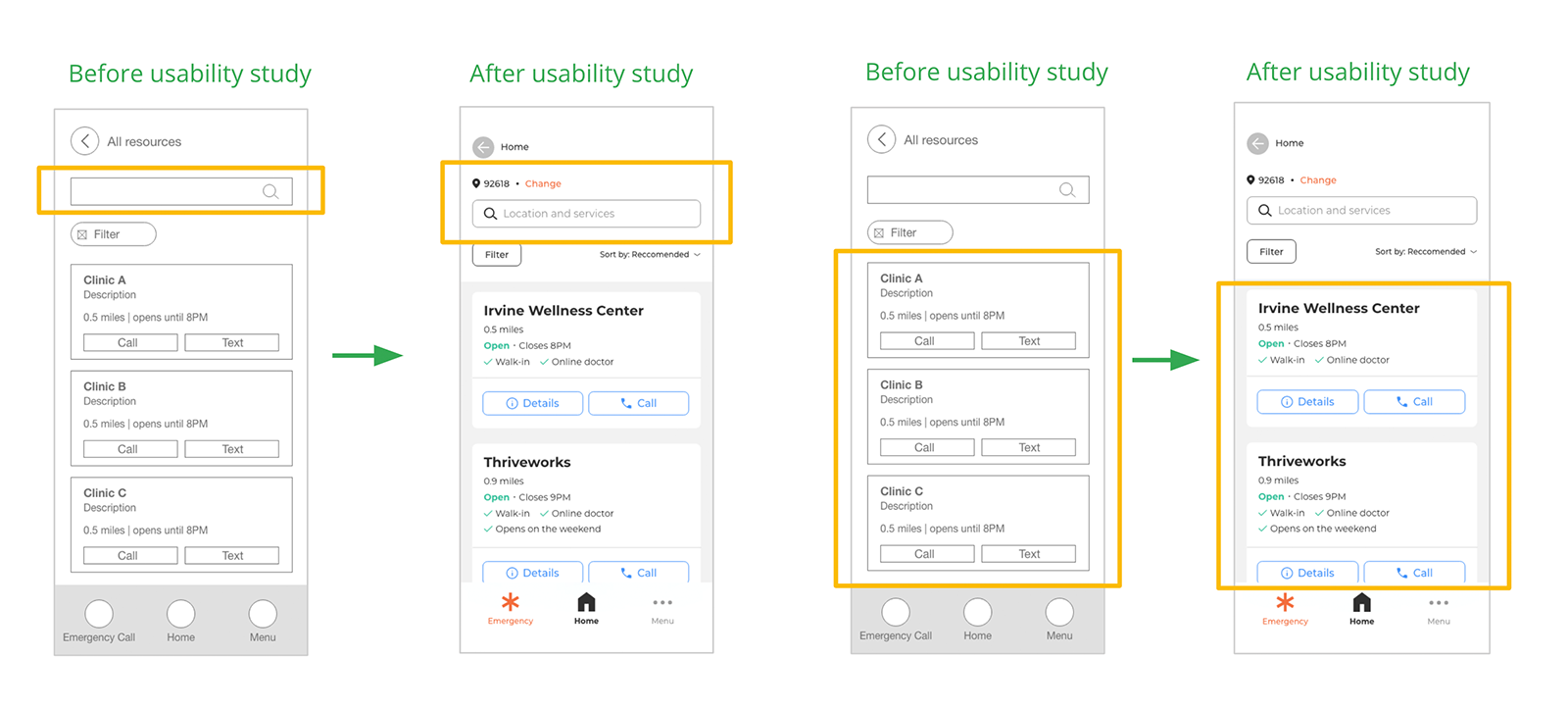 Additional design changes include adding more helpful information about each mental health care provider, such as “walk-in available” and “online doctor,” in addition to the distance and business hours. This was from the feedback from some participants who wanted to see more information about each clinic without tapping it to see the details one by one. This would help users determine which provider meets their needs and preferences.