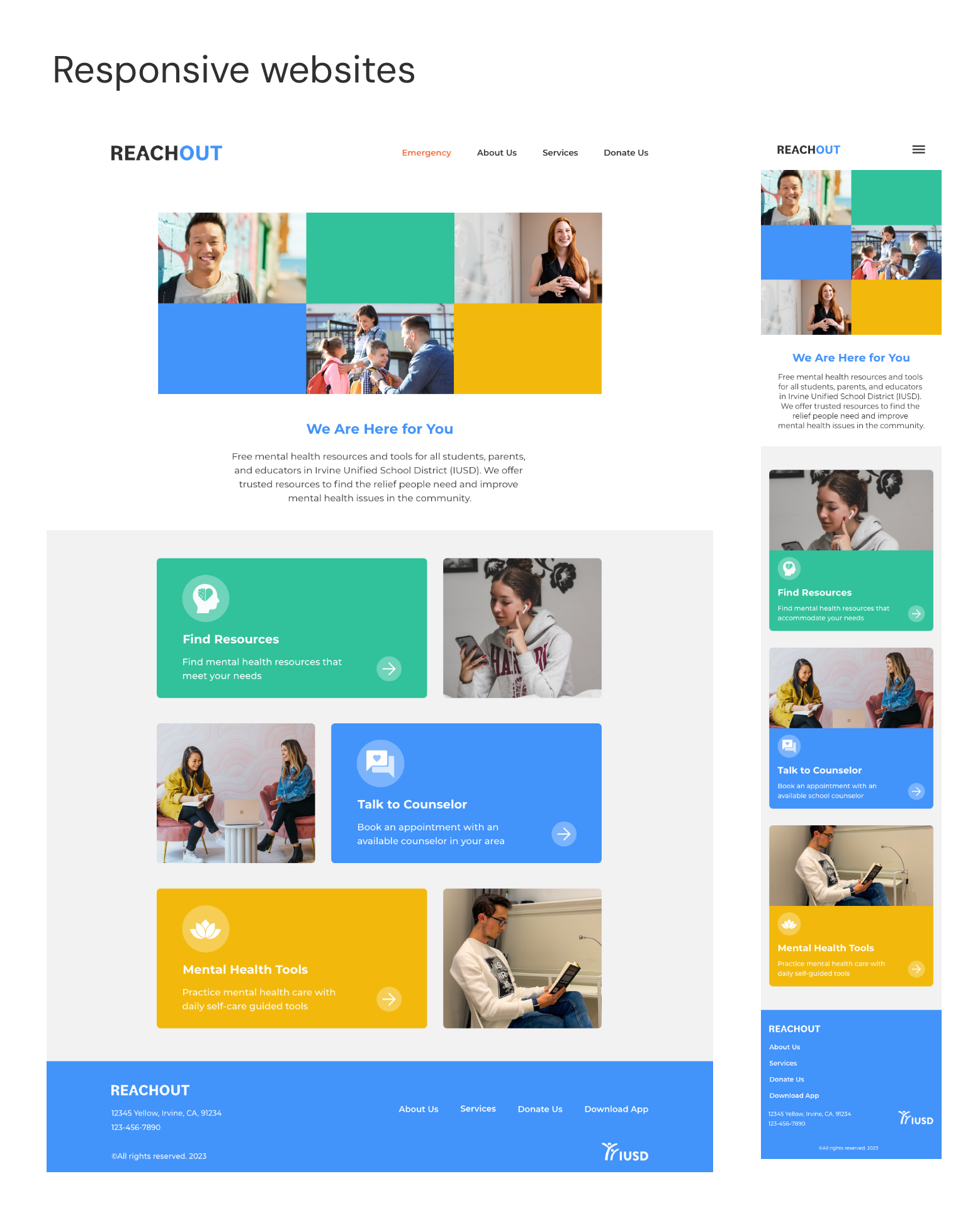 Design an inclusive app from concept to final product and a responsive website for IUSD to ensure everyone can access mental health resources.