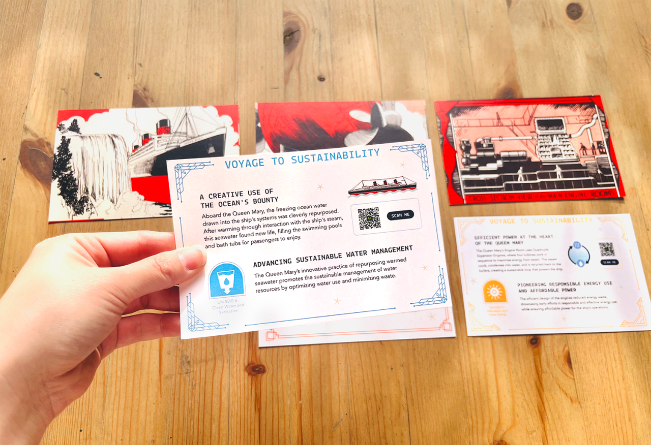 Voyage to Sustainability is an educational initiative that uses AR, interactive games, and visual storytelling to highlight the historical and sustainable efforts in the Queen Mary in Long Beach, CA, aligned with UN SDGs and LA OurCounty Goals.